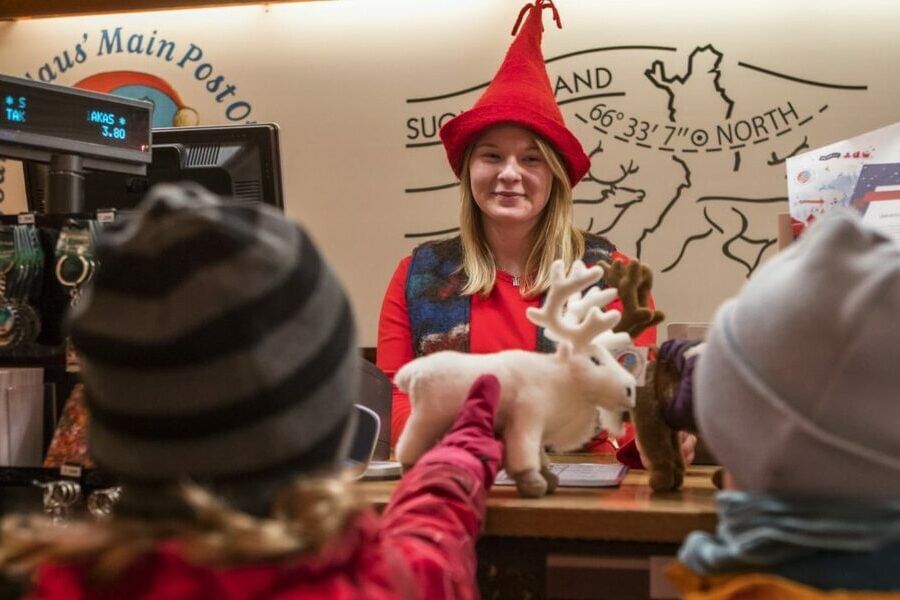 To meet Santa in his office, you will have to pass along the Magic Path. Meeting Santa Claus is a dream-come-true for most of the visitors of Lapland, and in high season there can be a long queue to his office, but on our excursion, we will use a pre-booked slot, which might shorten the waiting time. Finally, you will have a meeting with Santa - the biggest attraction in Lapland, you will also visit the Official Santa Claus Post office, which receives thousands of letters from children and adults from all over the world. Here you can send a postcard to your friends and family with the official Santa Post Office stamp and order a letter from Santa to your beloved ones for the next Christmas. Here we will have some free time, you can visit numerous Finnish design and souvenir shops in the village or grab a bite to eat or drink.