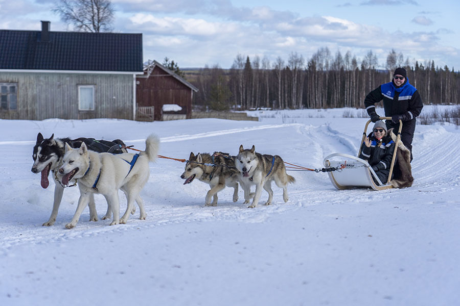 This family-run kennel is home to around 50 well-loved huskies — a mix of Siberian, Alaskan-Arctic, and reindeer dogs — each with their own name and story. Upon arrival, you’ll be warmly welcomed by professional mushers, smiling and passionate about their dogs. They’ll personally introduce you to your sled team, adding a heartfelt touch right from the start.