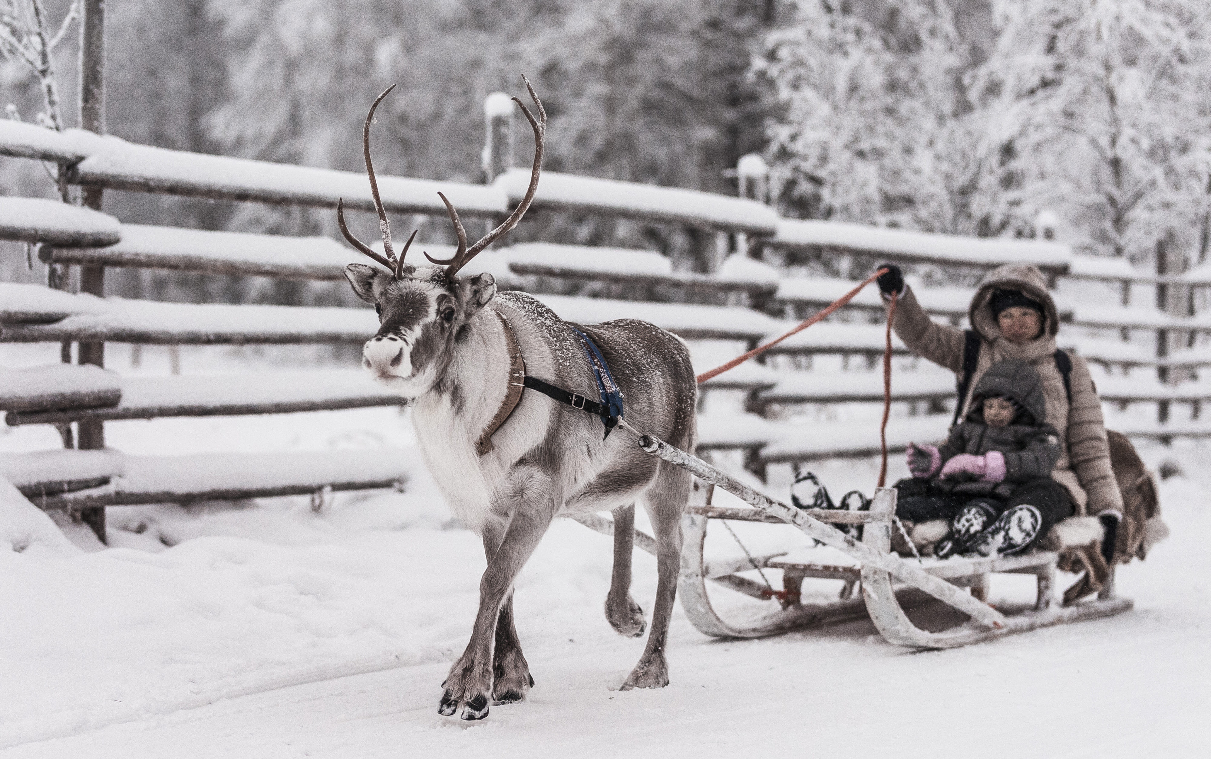 Go on a short safari 400m on reindeer sleighs through the beautiful winter forest