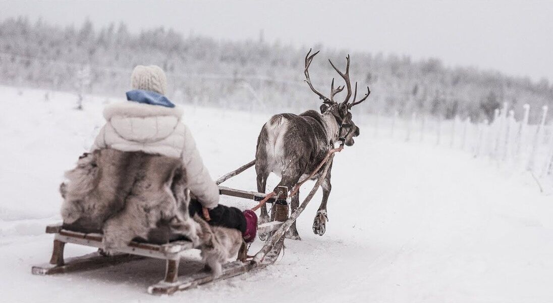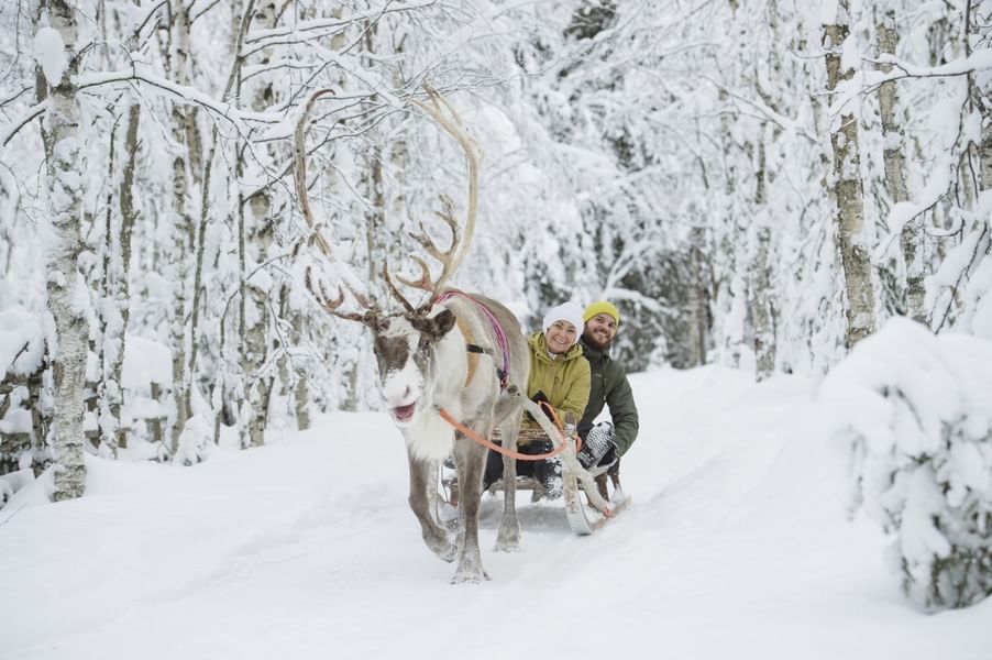 Go on a short safari 400m on reindeer sleighs through the beautiful winter forest